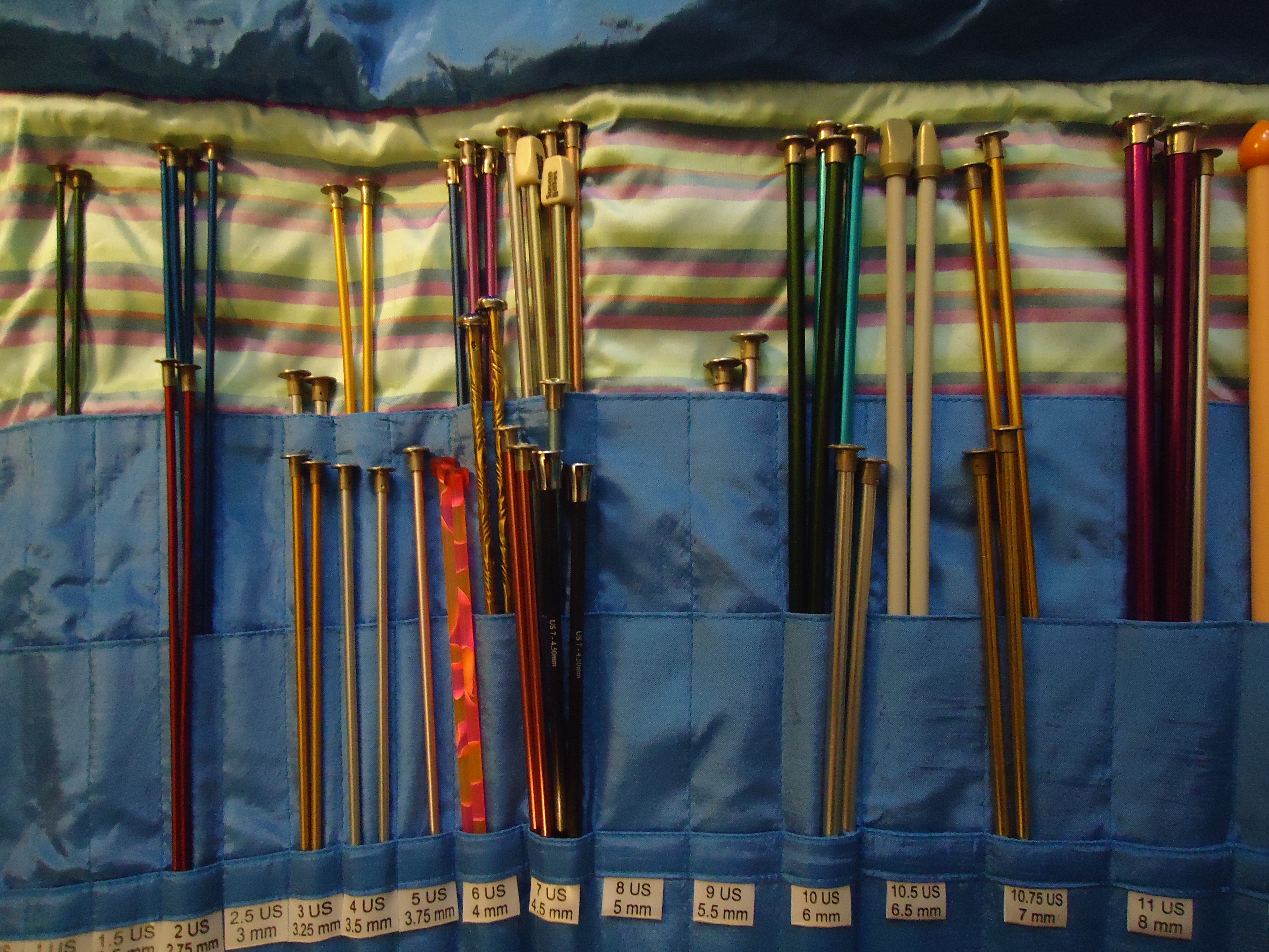 I learned how to knit as a teenager. I always preferred crocheting to knitting but didn’t stick with either. I seem to remember that we used aluminum needles although it was a long time ago and I might be wrong. Definitely not wood or plastic though. I don’t have any of them anymore but I have a few crochet needles. Sometimes they come in handy to poke something through to the other side (for fabric).