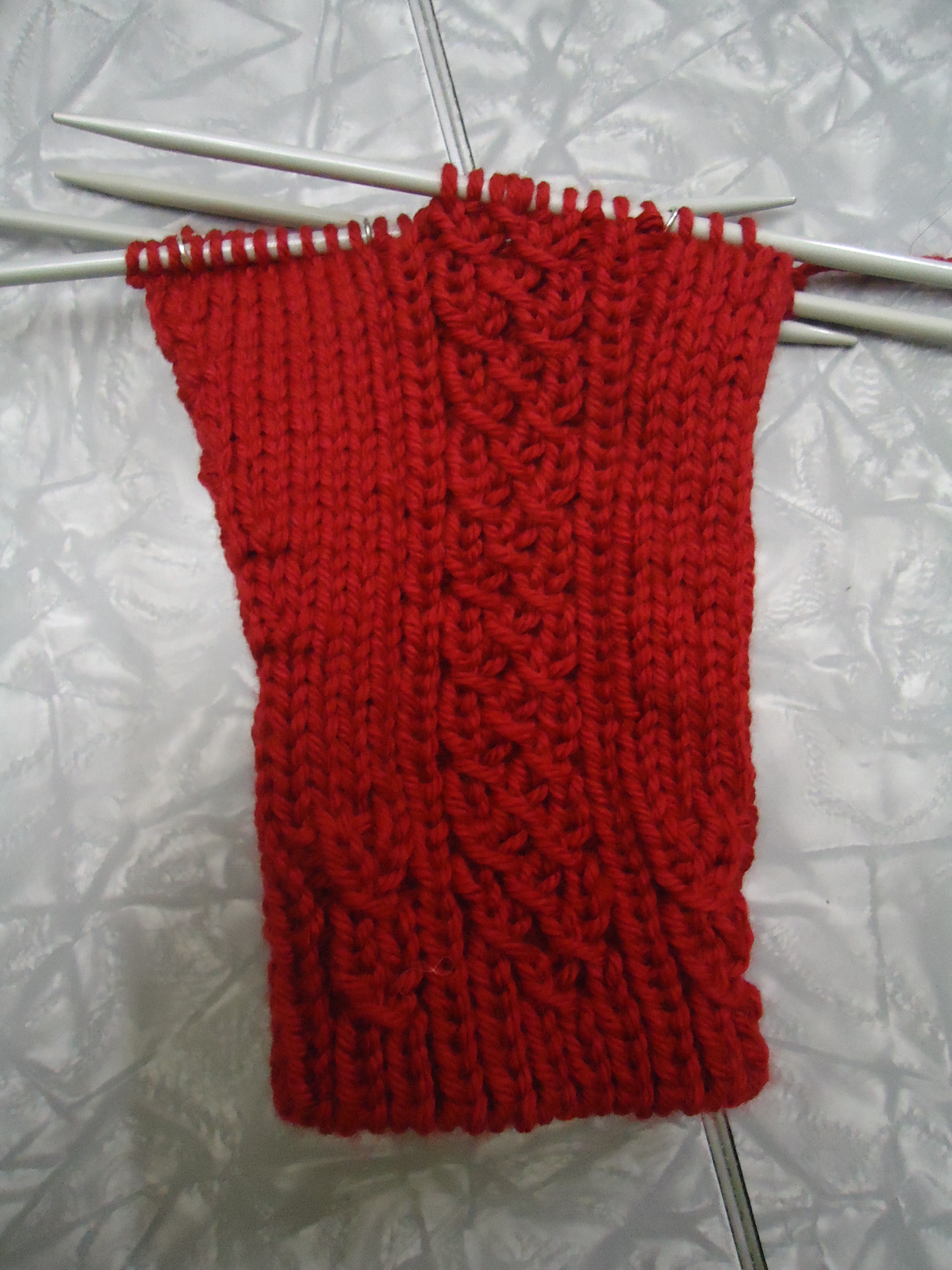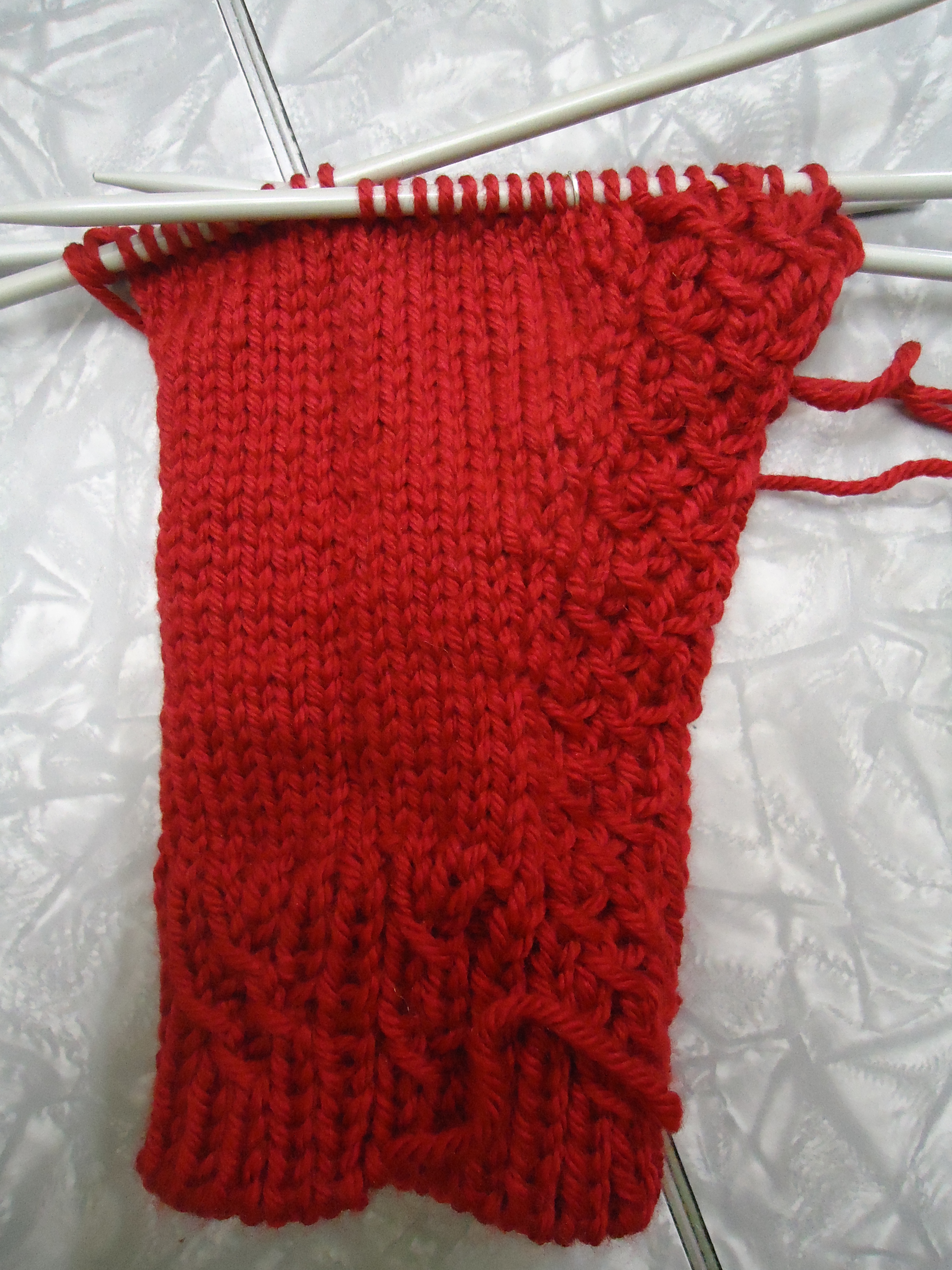 As a project, it is fabulous because it is bigger yarn on bigger needles, and mittens are smallish in any case, so they are going super-fast. Here’s where I am so far – up to where the thumb gets separated off.