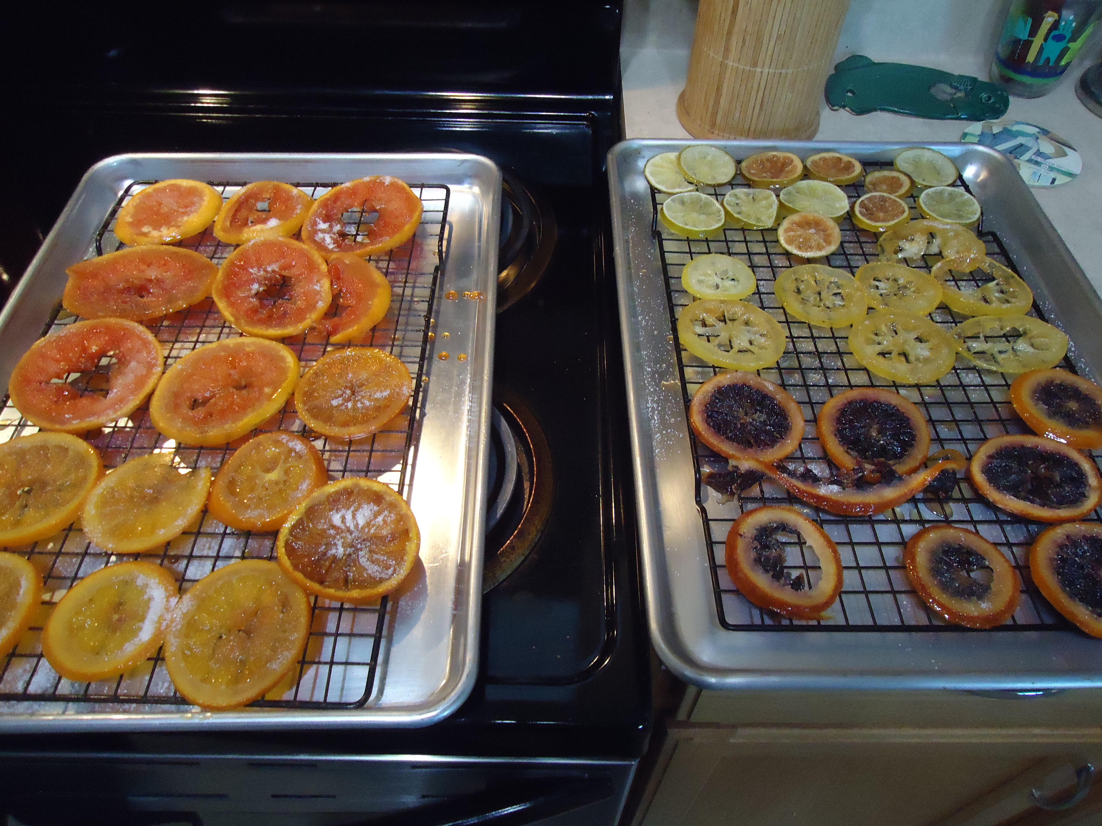 I spent about half my day last Saturday candying slices of every kind of citrus fruit I could get my hands on. And it mostly worked out OK! Actually, I’m still coming down from the vitamin C-laced sugar high.