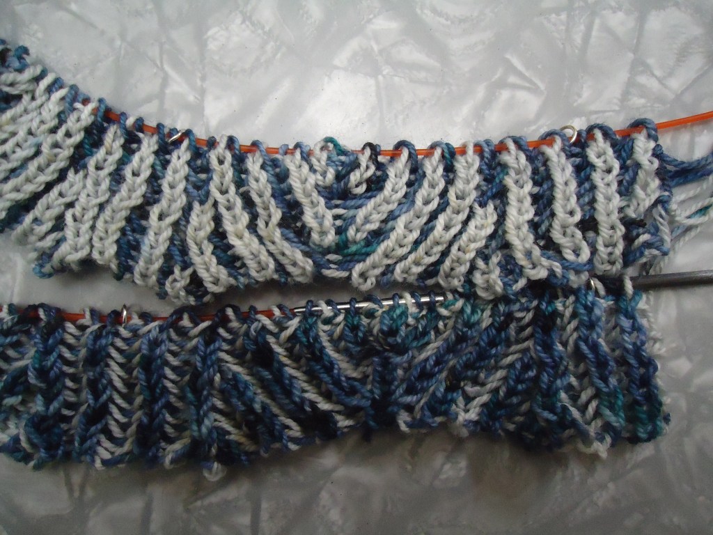 Not a lot to report on the knitting front. The socks are progressing, but not in any really dramatic way quite yet. The brioche scarf is progressing pretty well also.