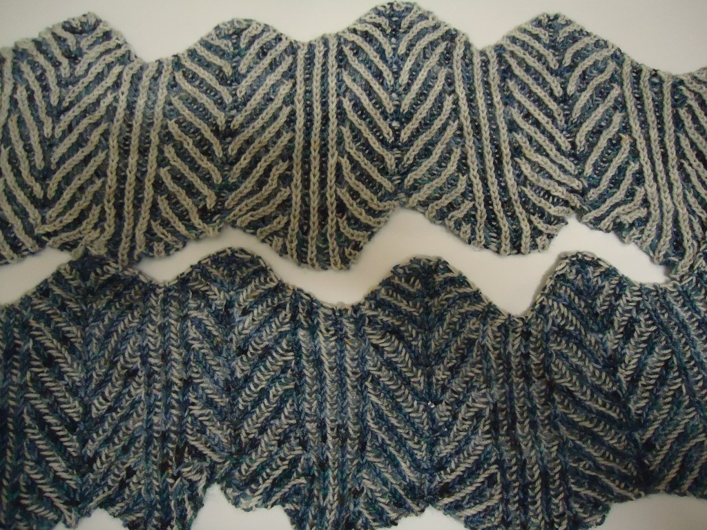 My Falling Leaves scarf is done! This was a great skill builder for me, as I not only learned to do brioche increases and decreases, but also the two color Italian cast on AND the tubular cast off.
