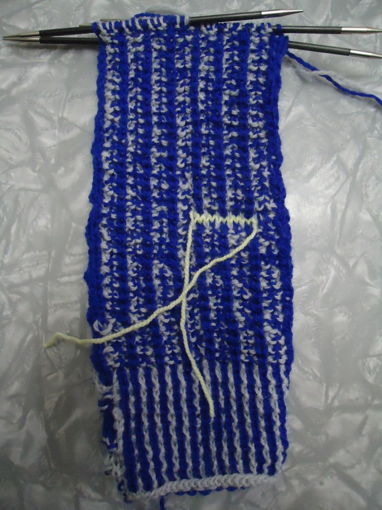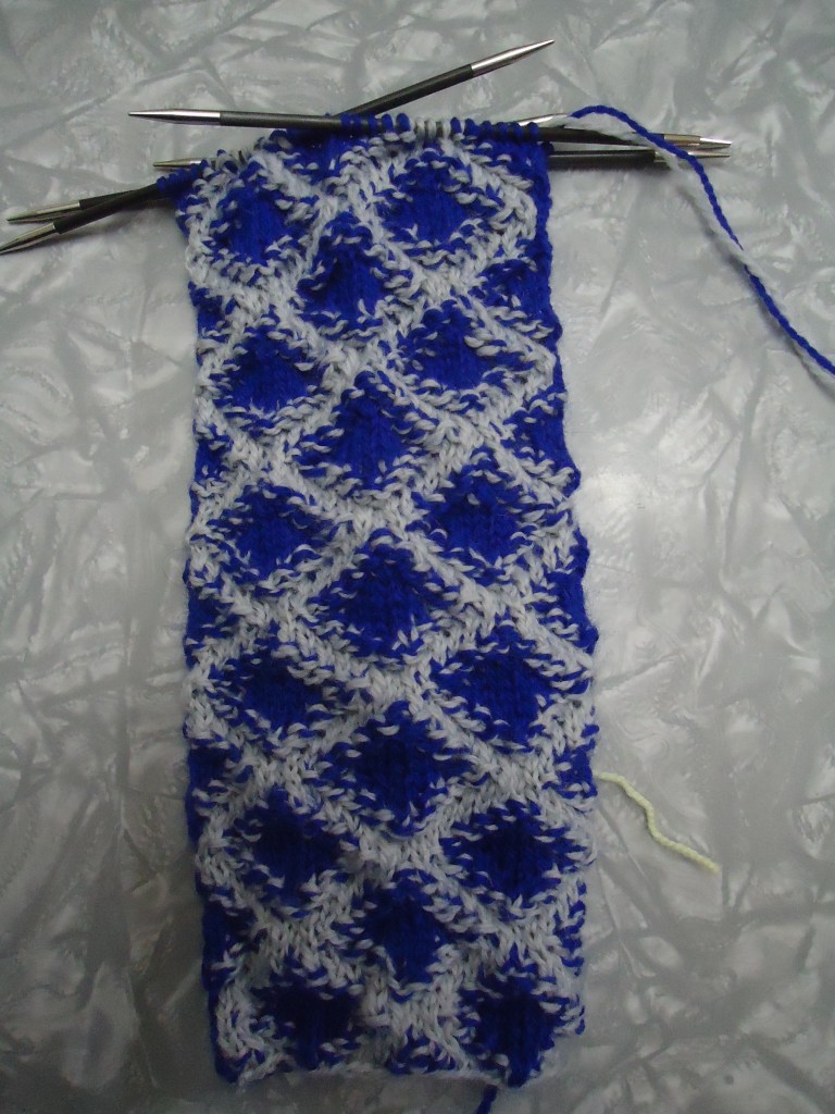 I really wish I could see them in person, because I want to touch them so I can get my brain around them. They look really cool. I’ve been working on my sockhead cowl this week because I’m too tired to knit anything else.