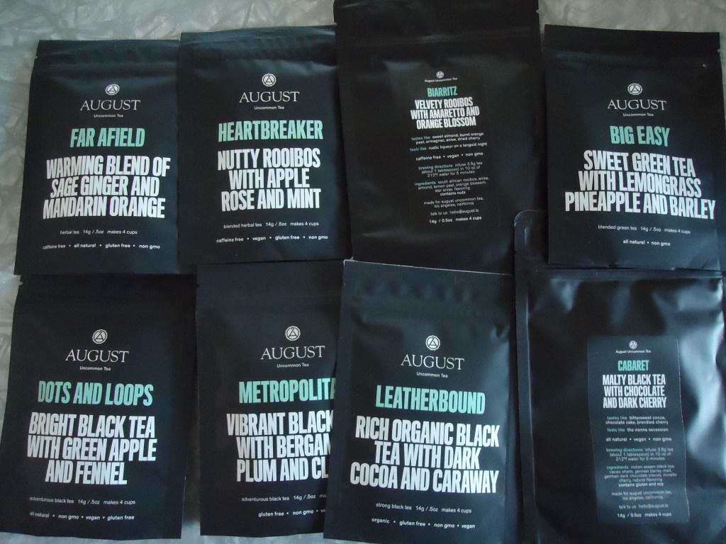 So out of this set of samples, there were two I wouldn’t order again, and six that I would – so that’s pretty good odds 🙂 Overall, these teas are good quality with interesting flavoring. Well worth a try!