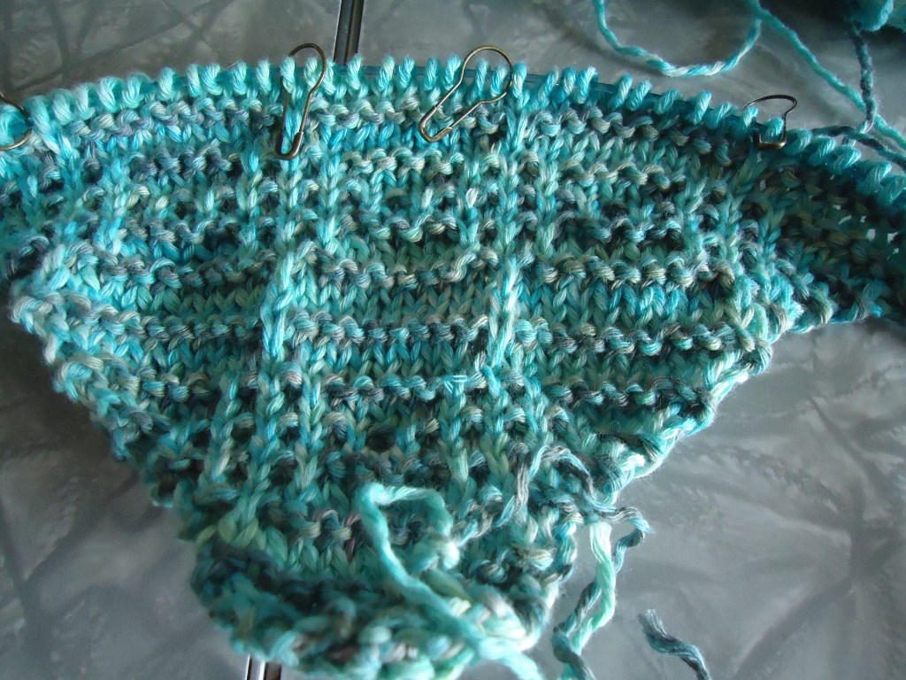 This looks great, but I know that Rowan denim often grows when washed and the colour can bleed too – though maybe not so much with this light shade. I can’t help thinking that you should give this a good soak before knitting any further just to make sure.