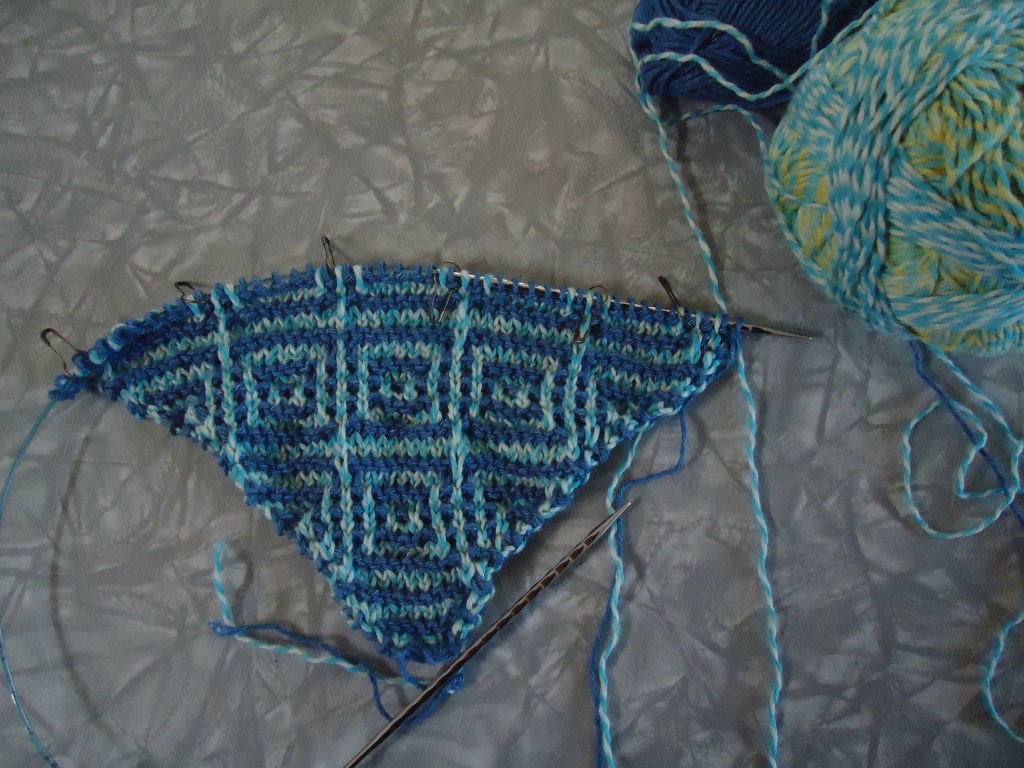 Well, my second KAL of April started yesterday – Temple of Flora is a mosaic knitting shawl/wrap with an interesting construction, designed by Franklin Habit.