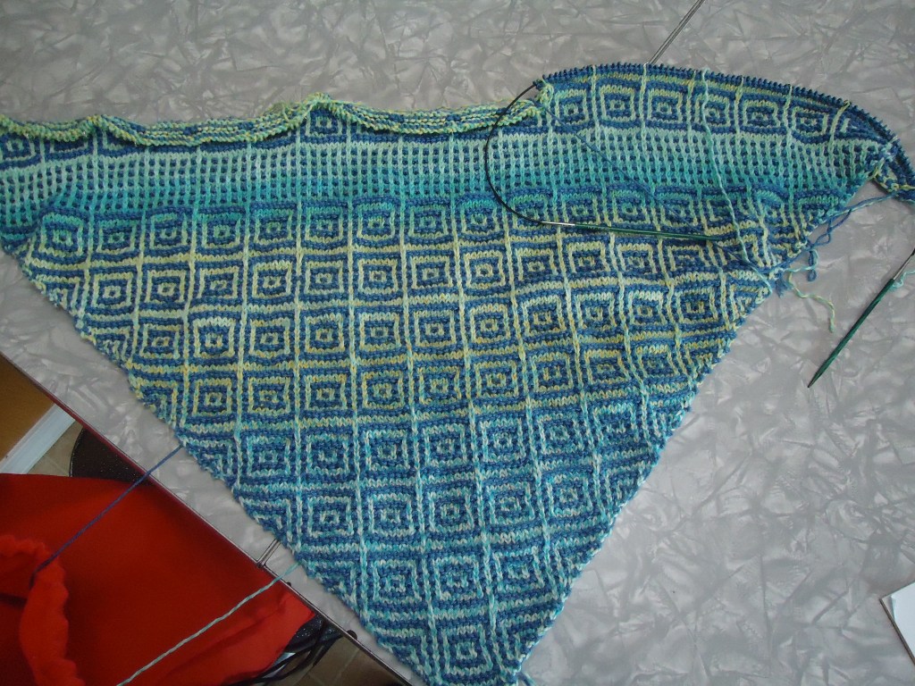 Thanks! You are moving pretty quickly on your shawl, and it is looking lovely ๐ This is sport weight yarn and bigger needles, which helps it move along.