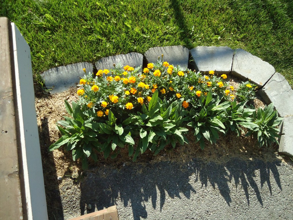 The walkway plants are coming along – the marigolds are going crazy! The front row is forget-me-nots, which we always like to have somewhere in the arrangement – they are the state flower. The plants are doing well, but no blooms yet!