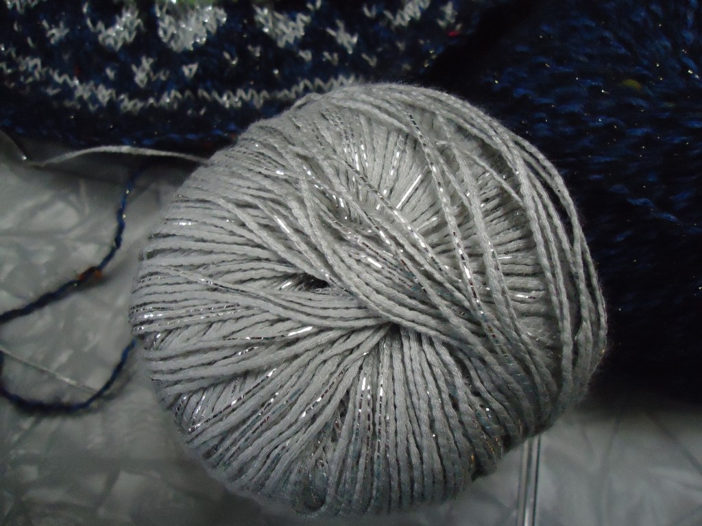 The silver yarn is left over from my Arachne sweater – it is the yarn I used for the webbing. It is Concept by Katia Versailles in Silver. Glad I am getting to use up a bit of stash on this one.