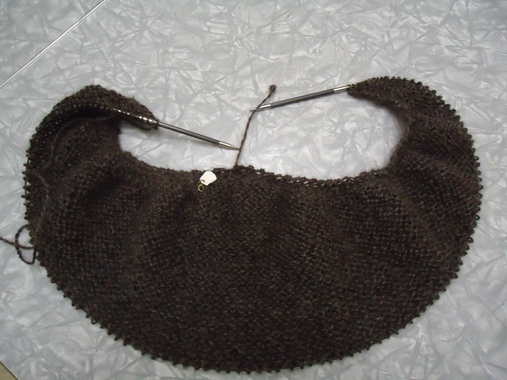 I’ve got two project going right now, both kind of new. I’m making my Mom an (Ravelry link) Odyssey shawl . It’s looking OK so far – I’m just at the 1st lace part, so will be getting started on that hopefully tomorrow.