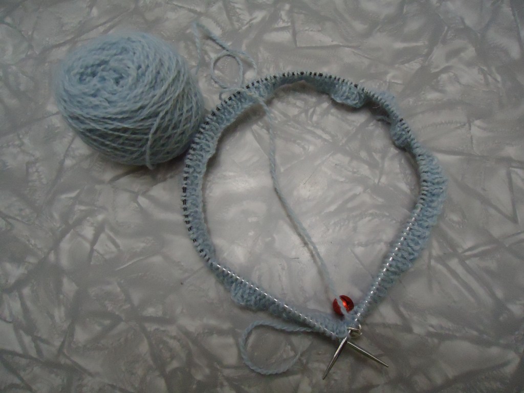 The other project I started just tonight is a (Ravelry link) Blue Shimmer cap. I have had the kit for years, and finally decided to get going on it.