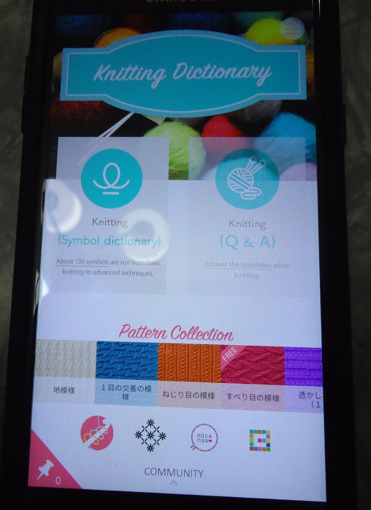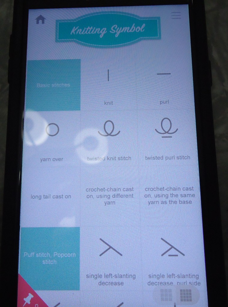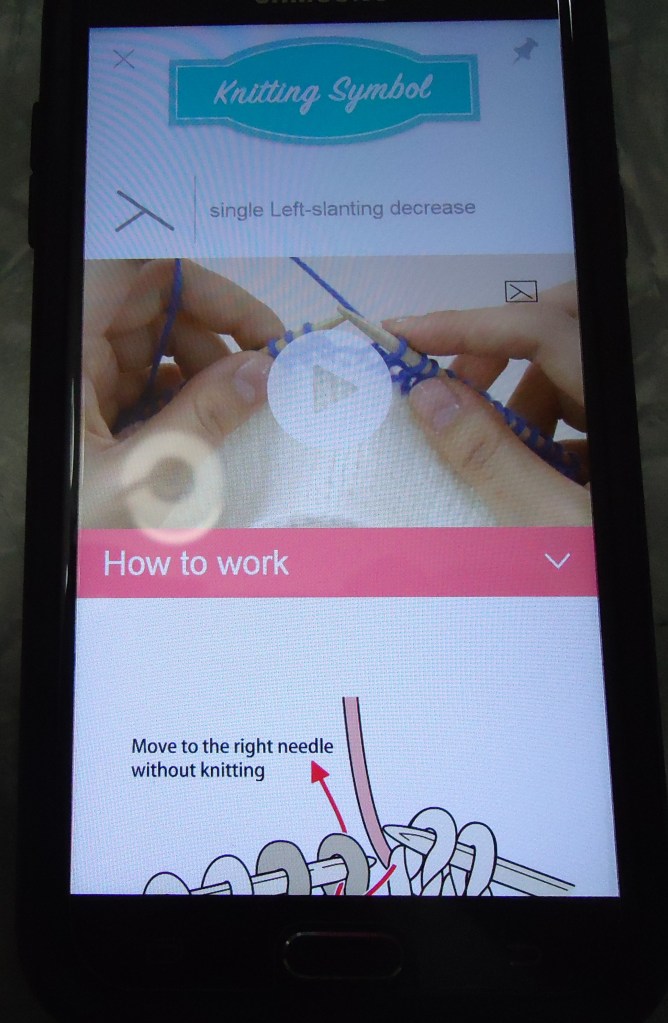 I recently found out about a very cool knitting app published by Nihon Vogue. It has a stitch symbol dictionary which also has videos on how to do the stitch, and also has some patterns built in, along with knitting Q&A. As usual, please excuse the terrible indoor nighttime photos.