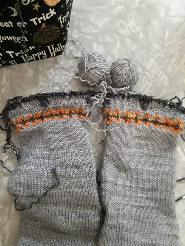 At least this time rather than waiting until I cast off to try my Fright Night socks on, I tried them on as I went. And yup, they are too tight again. This attempt was on needles up 1 size from what I used for the rest of the sock, and just generally trying to keep the yarn looser. The problem this time is mostly how tight I kept the yarn between the front and back halves.