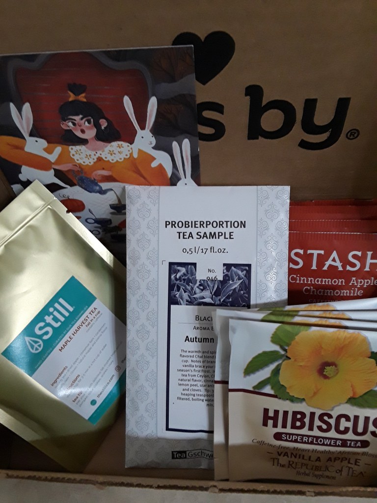 So far I’m impressed by the variety. Out of three boxes, I only got one brand I know, which is pretty good if you like trying new things. The boxes have 4 bags or servings each of four different teas. So you can really try out each of the different teas. Then if you like them, you can buy more in the online tea shop. So far I have tried 3 of the teas, and really looking forward to the rest!