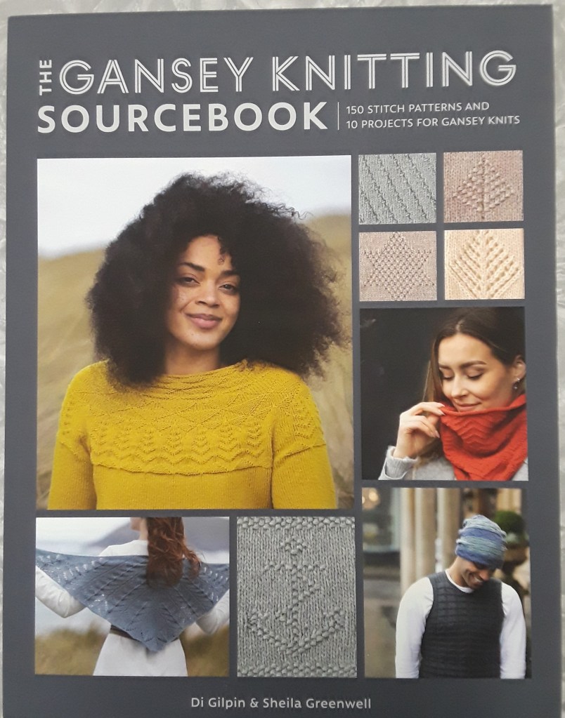 The Gansey Knitting Sourcebook is by Di Gilpin and Sheila Greenwell. It is new, published in 2021. This book starts with a few pages of the obligatory history of ganseys, then spends a few pages on gansey-specific techniques. Armpit and collar gussets are covered, as well as shoulder straps. Then it’s on to the stitch patterns! The majority of the book is stitch patterns, thoughtfully organized in categories to make it easier to find what you are looking for. Finally, there is a collection of patterns.