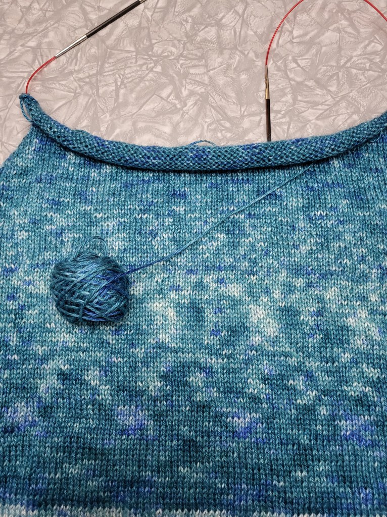 The yarn is a silk/mohair blend that was expertly dyed by Alissa of headknits, and also Chestnut Hills Studio. The pattern is the romantically named 106-11 from Drops. I’m a few inches away from being done with the back, and I’m really happy with it so far!