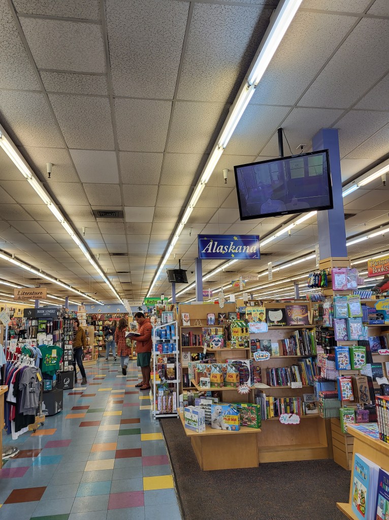 Title Wave is a much-loved institution in Anchorage, and the state’s biggest and busiest bookstore. We do have a Barnes & Noble, but they don’t actually have as much stock as Title Wave. TW advertises that they have half a million books in stock, and I believe them.