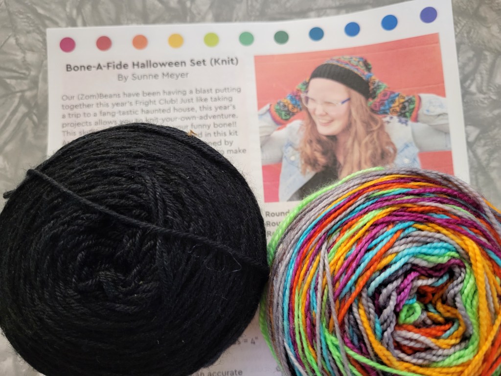 So what’s next? It was going to be my brother’s Christmas KISS mittens (Ravelry link). But I’m going to do a quick pause for a quick spooky season project. Mom and I got this year’s Jimmy Beans Fright Club!