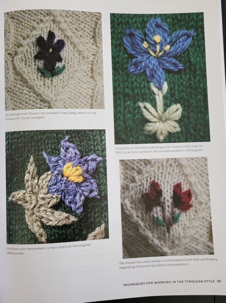 Some of the patterns feature embroidery embellishments on the knitting – she has instructions and illustrations to help you with that.