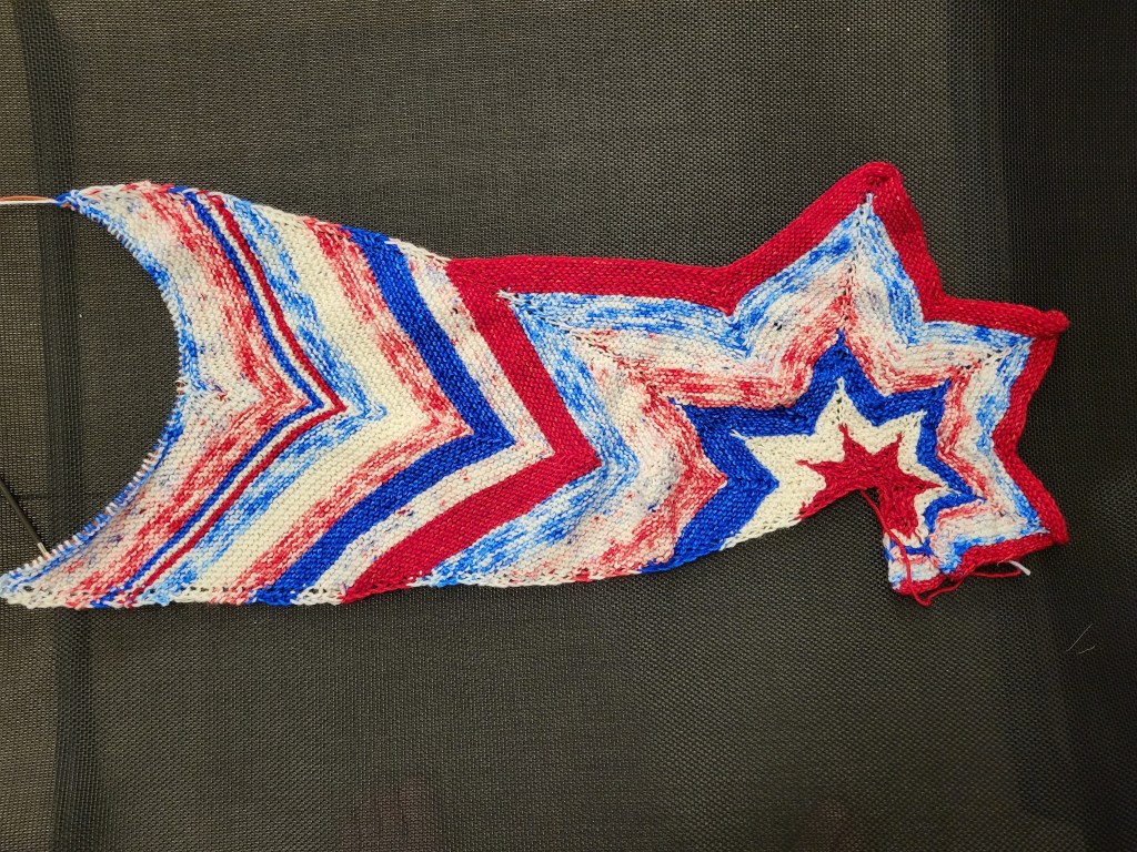 My patriotic firework scarf! The pattern is Shooting Star by Natalia Moreva (Ravelry link) and the yarn is the Patriotic miniskein bundle from Nanette Wake on Etsy. It’s a little bit gaudy, but I am enjoying working on it!