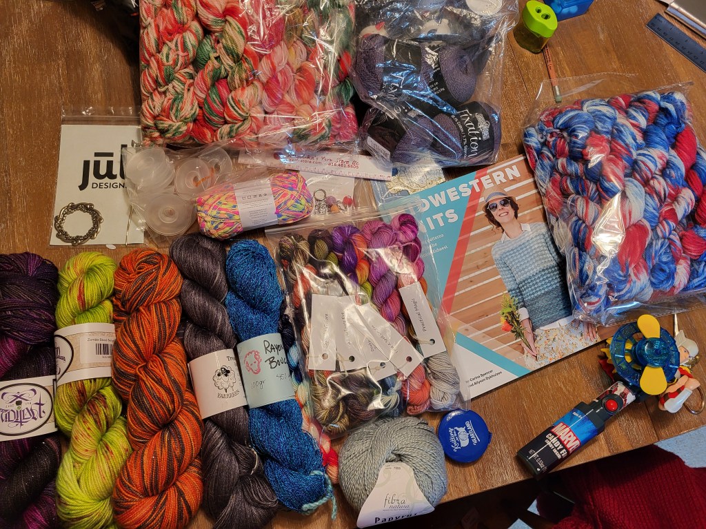 I found some lovely yarn and knitting tools, an interesting book, and a shawl pin I have had my eye on.