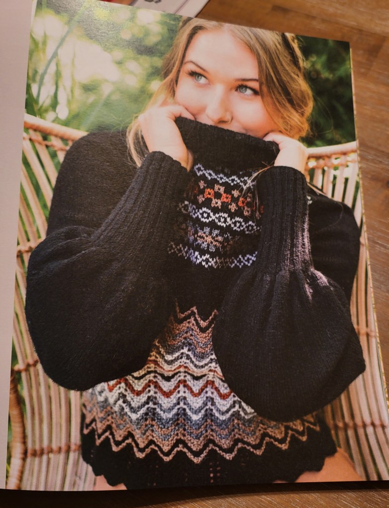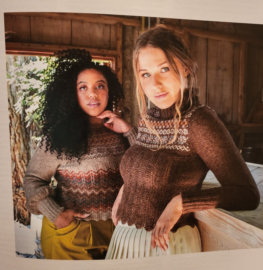 This project started when Gudrun was given some of those original sweaters and began to reverse-engineer the patterns, as there do not seem to be any original written or charted patterns. It was the 70s, so although the motifs are Fair Isle, the silhouettes are pure disco era. Big poufy balloon sleeves, high necklines, peasant-blouse looks, smocks… You get the idea.