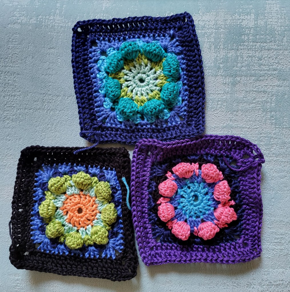 The Homage to the Granny Square continues on! I’ve got 6 more of this block to do, then 4 big corner blocks, then it’s time to assemble! I’m enjoying it, but also looking forward to being done.