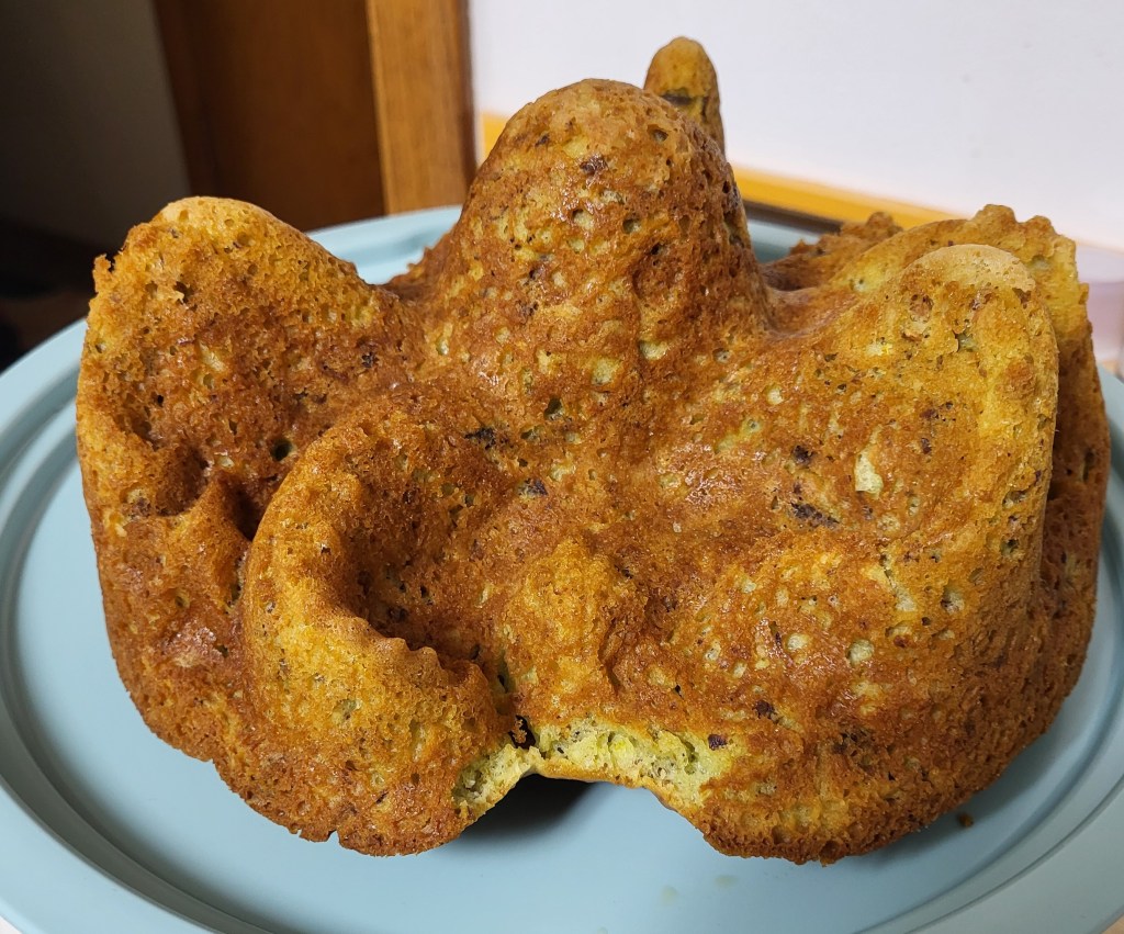 I baked it in this pan, which I could not resist. I think next time I use it, a batter with no inclusions will make the details stand out a little more. Or maybe a little bit of decorating? We will see.
