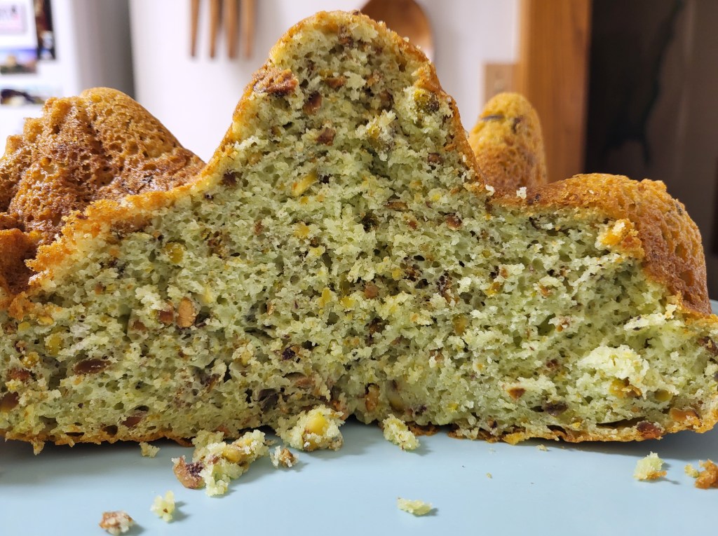 Throughout my efforts this year to become a better baker, I have been trying to work from scratch as much as possible. Occasionally I will go with a premade crust for pie, but usually I try to do completely homemade. However, this week I tried a box mix special – Pistachio Pudding Bundt Cake. The ingredients include eggs, water, milk, pistachios (optional), and vanilla extract. And a box of cake mix and a box of pudding mix. Basically, you throw them in a bowl, mix them up, and bake.