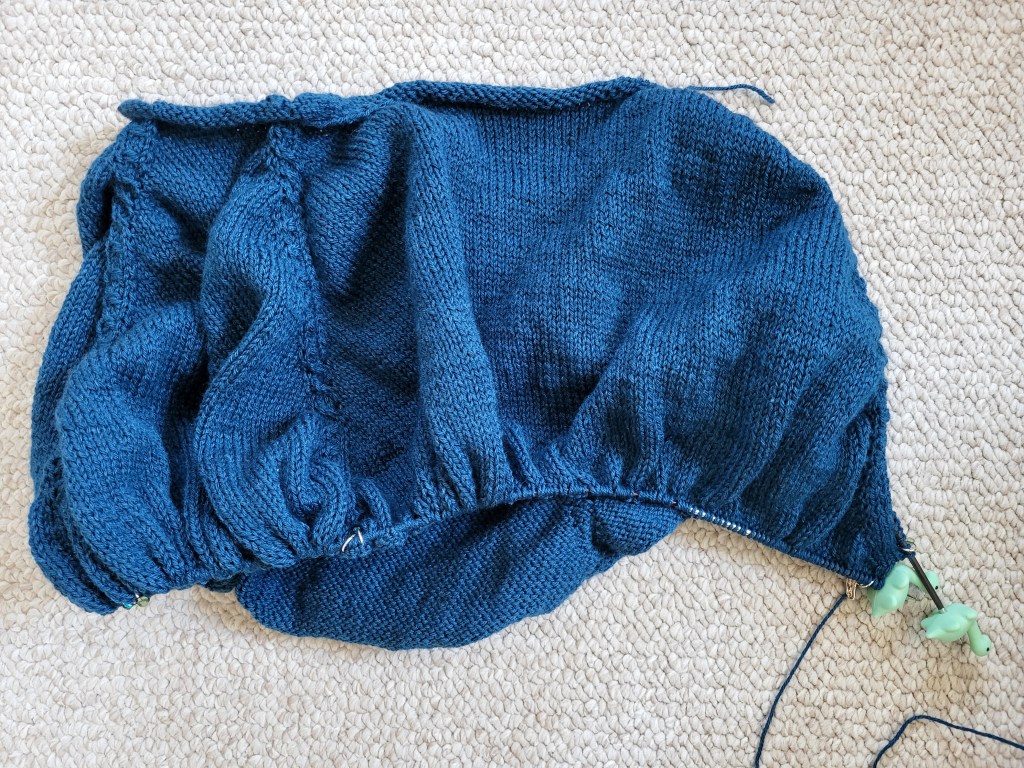 Still working on the yoke of my Melville. Just a few more rows until I can divide!