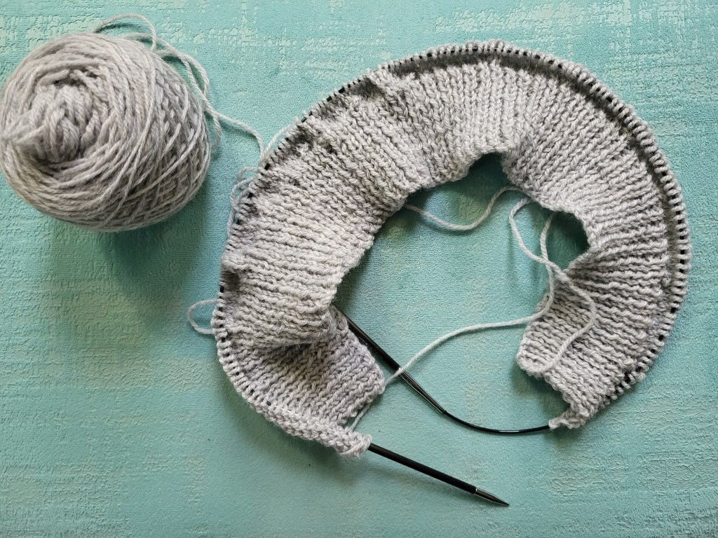 Two new projects on the needles this week! First is the Peggy Sue cardigan that I started pretty much the day I finished Melville. I’m using Cloudborn Sport, the old Craftsy Yarn it was designed for. It is knit in pieces and sewn together. Just getting started on the back at this point.