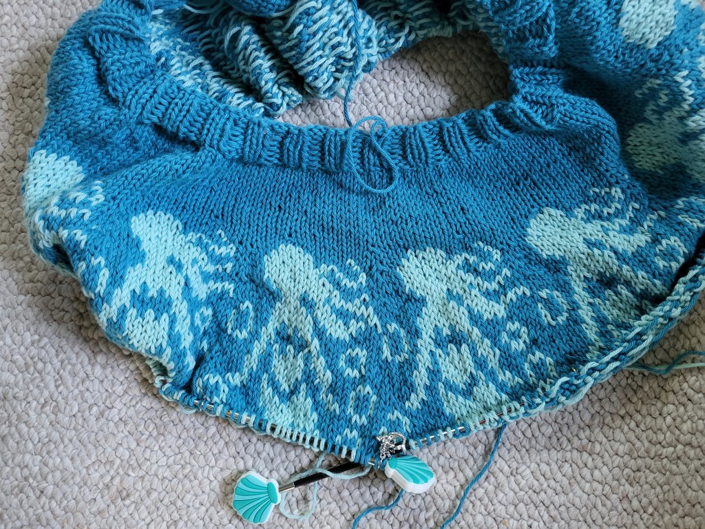 First, She Makes Waves. Alissa and I are doing a couple of summery, nautical-inspired KALs together this year, including this mermaid-theme sweater, and a sharky project to be named next week!