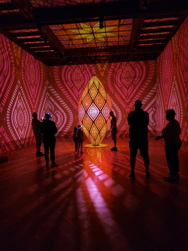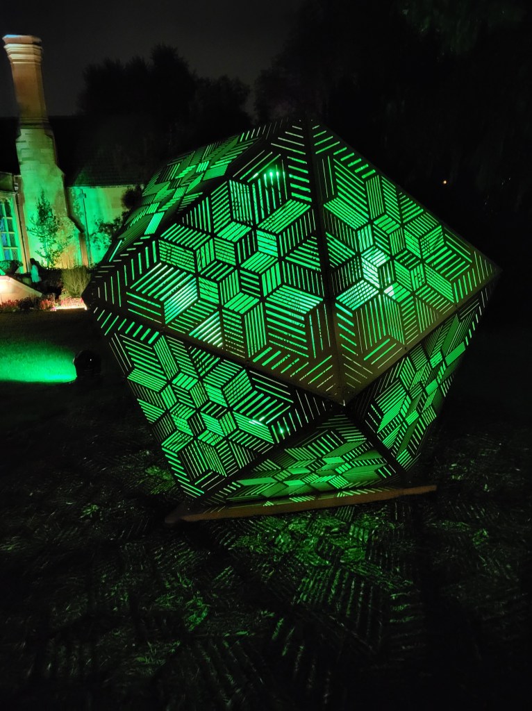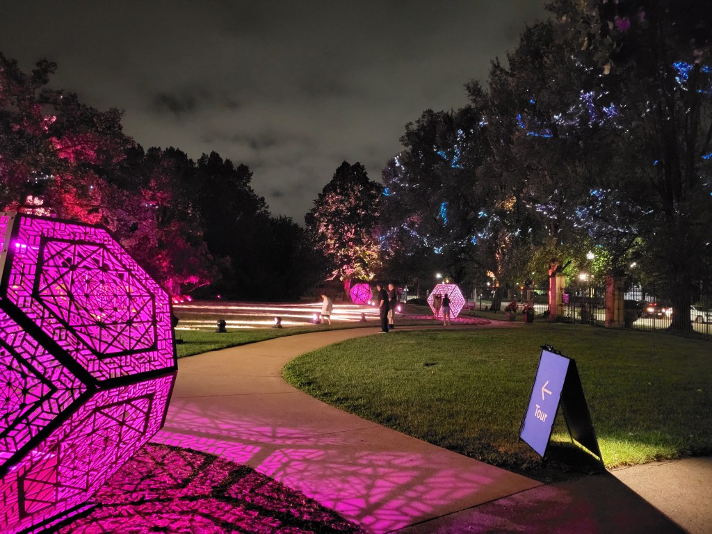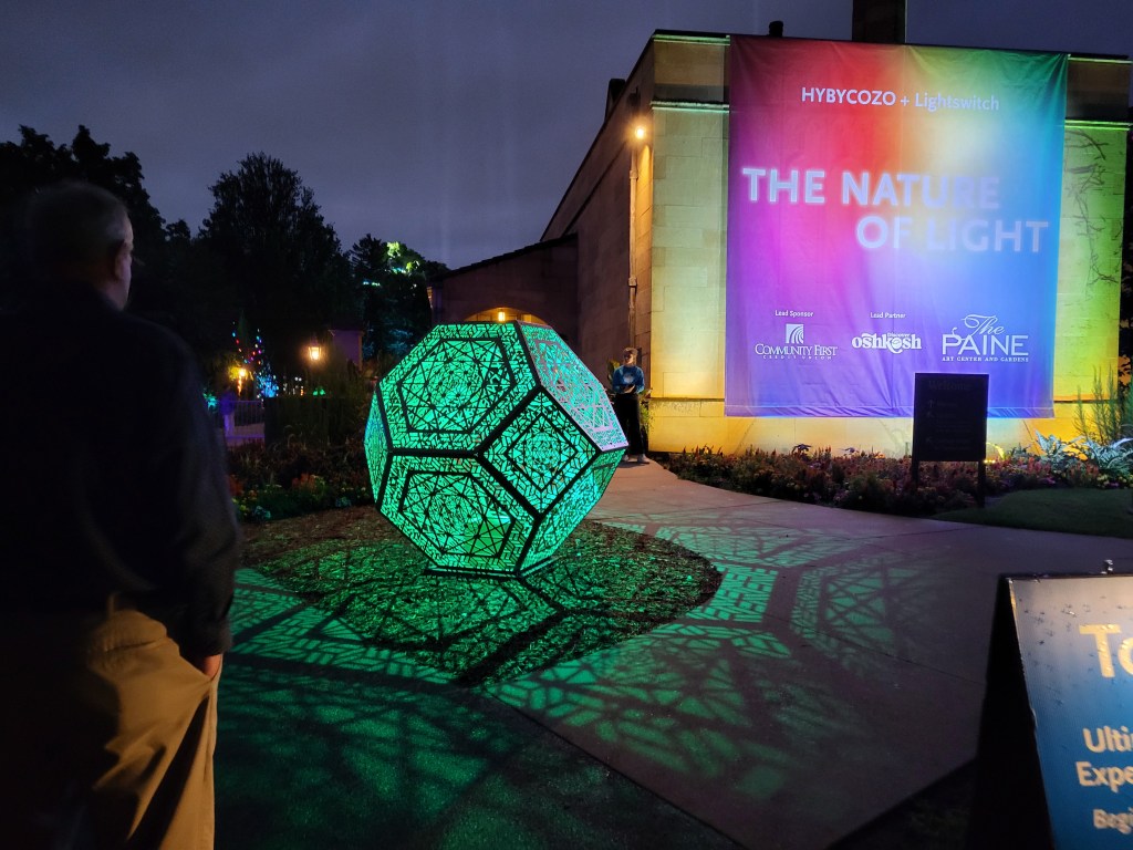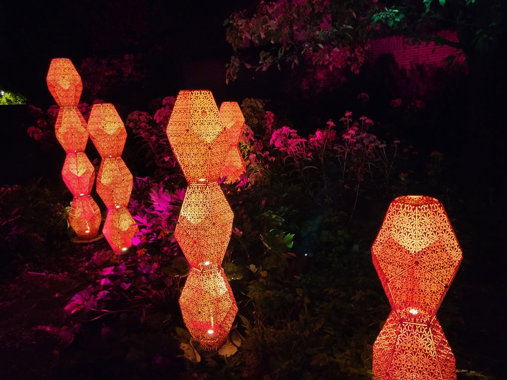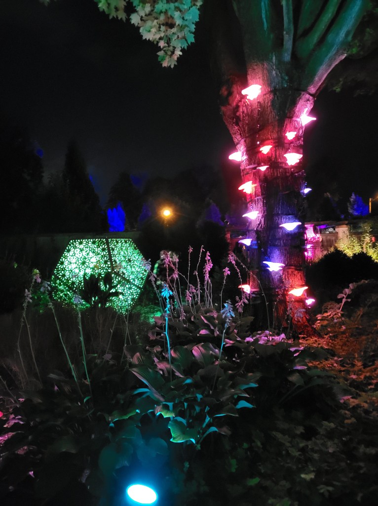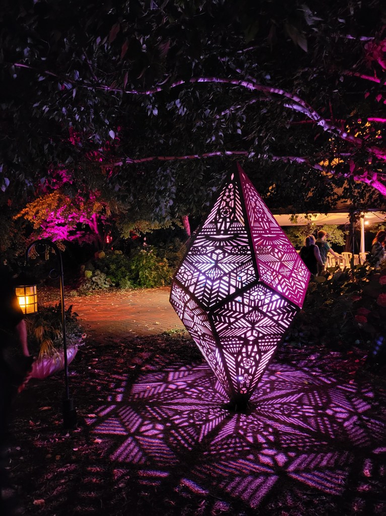 Anyway. The Nature of Light is a sort of multimedia event. at the heart of it are hollow metal statues with openwork patterns. Light is used in and around the statues and the environment along with music to create an immersive experience. The statue and light displays and music were inside the museum as well as all over the grounds.