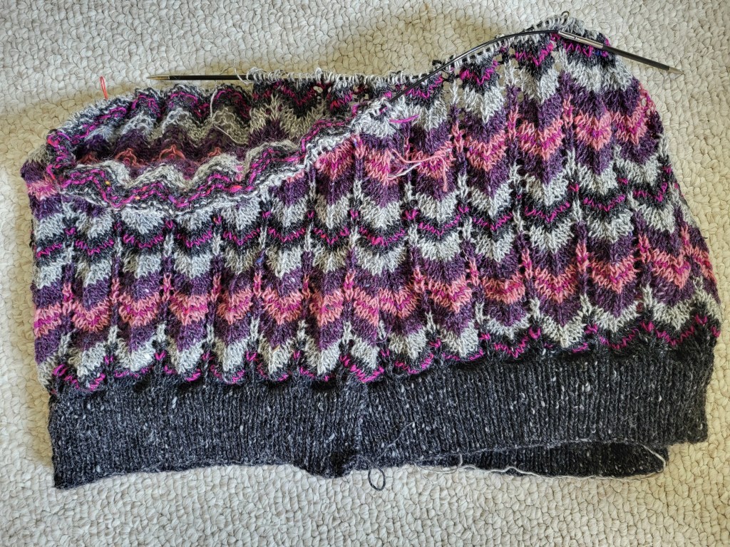 I’m 2/3 of the way there! I love the way the yarn I picked for the ribbing looks, but I’m really looking forward to moving on to the colorwork. 😉