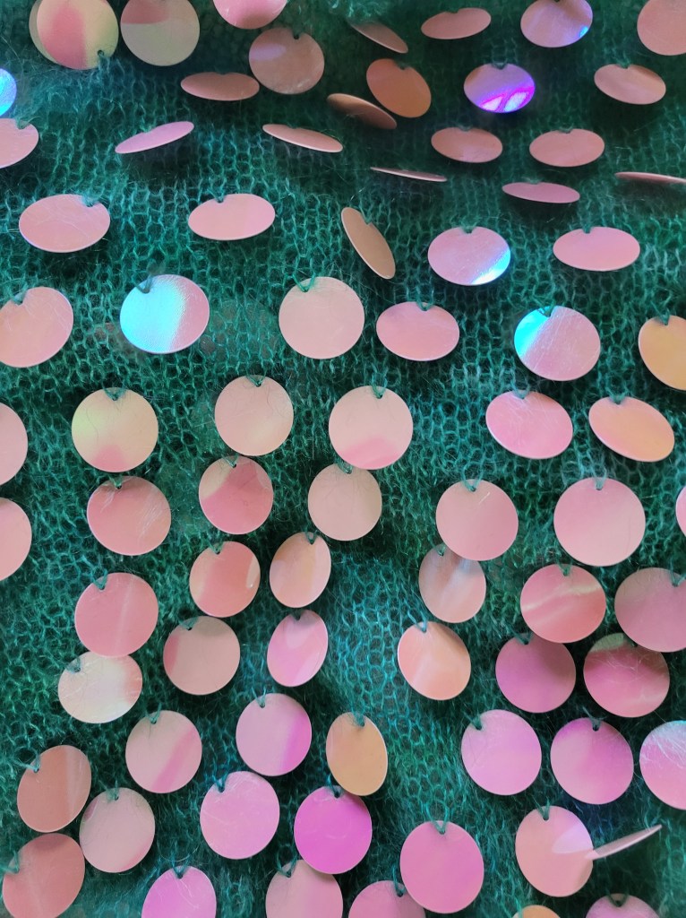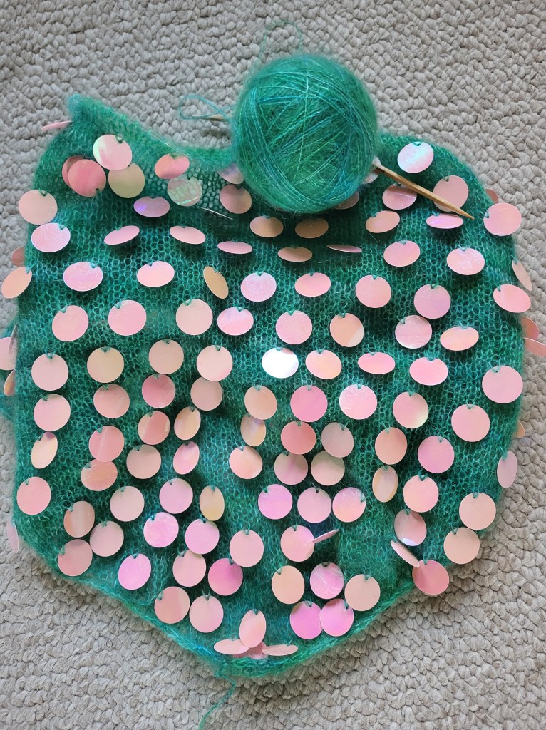I love those giant sequins! And the color is just right for the yarn.