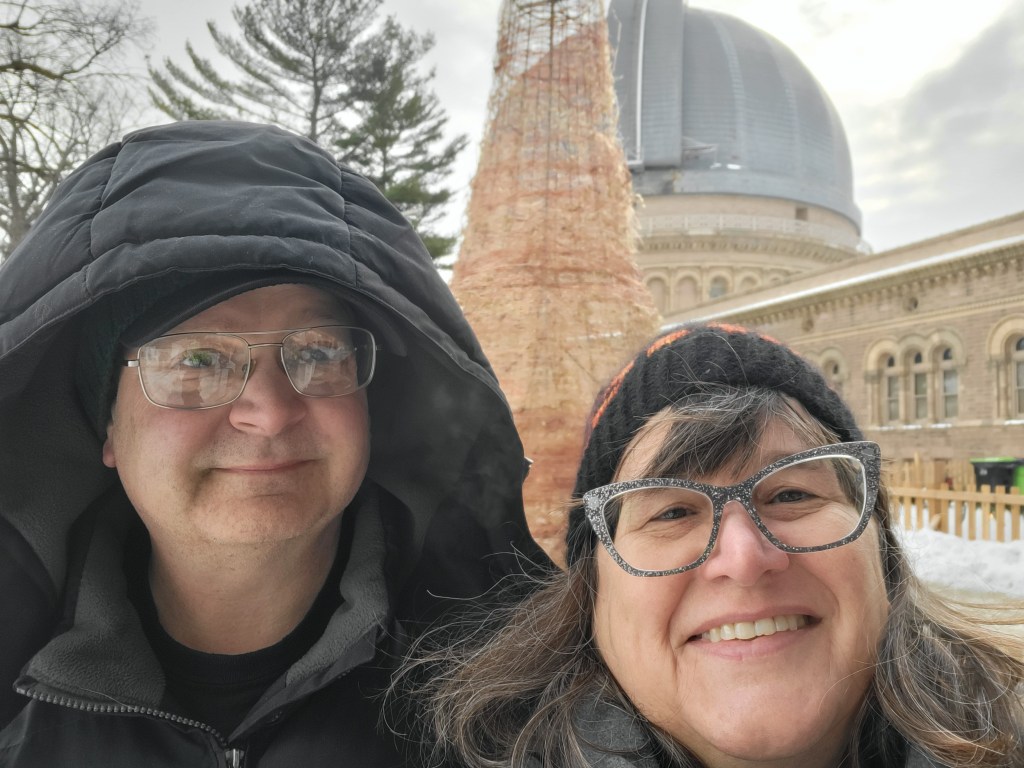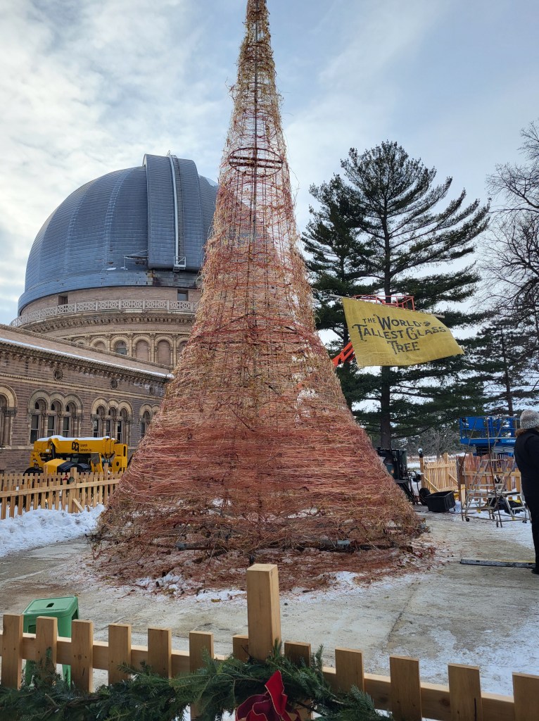 DH and I took a little break last Saturday and went to see the World’s Tallest Glass Tree Festival! It sounded like a nifty event, put on by a glassblowing organization that emphasizes using recycled glass. It also helped that the event was being held at Yerkes Observatory, which I dearly love and have been agitating to visit since we were there last fall.